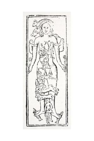 How the Various Parts of the Human Body are Governed by the Twelve Signs of the Zodiac Giclee ...
