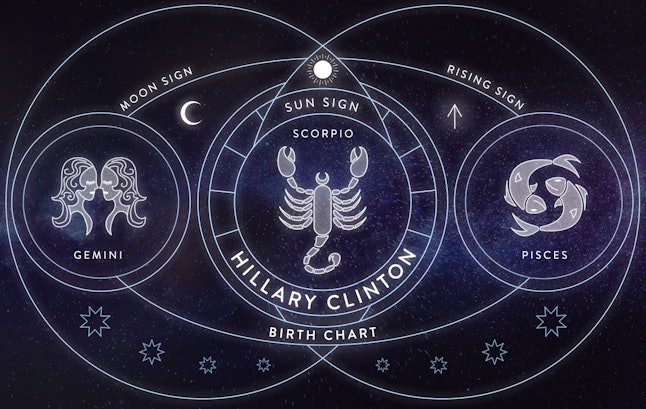Birth chart of Hillary Clinton (Hillary Rodham Clinton) - Astrology ... Hillary Clinton, Birth Chart Horoscopes & Signs - Scorpio Biography at Wikipedia ASTROLOGICAL SIGNS Sun in Scorpio 2°18' Sun Sign - Zodiac Sign People born under the sign of Scorpio can think very clearly, they have a good judgement and can assess situations very well.