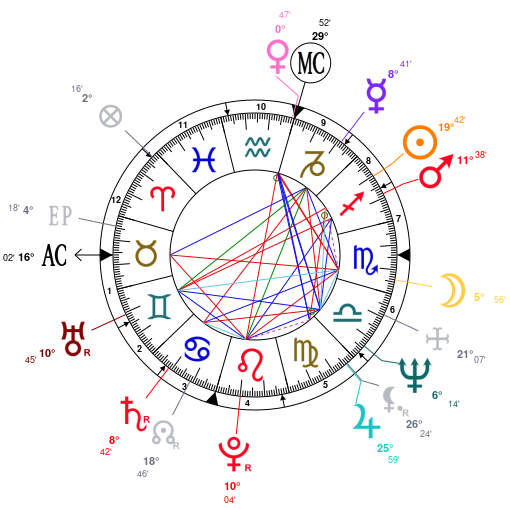 › astrological_aspects_ofSearch Tool by Astrological Aspects - Astrotheme Astrology DataBase on October 9, 2022 at 6:58 PM, CEST 62,490 people and events , 28,283 of which with a known time of birth Search by filters , aspects , positions , categories or heights › celebrities › rechercheFind instantly a celebrity and display its horoscope - Astrotheme Asteroids in Astrology; Astrology and Personality; Planetary Dominants: Method; Venus Retrograde; Black Zodiac: Humour; Pluto: Eros and Thanatos; Neptune: Intuition and Mirage; Uranus: Bolts from the Blue; Saturn and Seriousness; Jupiter: Your Heaven-sent Gift; Mars: Energy and Action; Venus and Love 1/2; Venus and Love 2/2; Mercury and ...