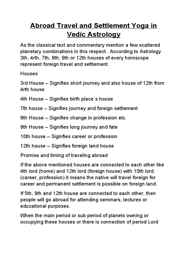 Vedic Astrology Combinations For Foreign Travel - Astrobix.com 8th house is the house of longevity and legacies. Being a watery house it also plays an important role in determining the prospects of travelling abroad.