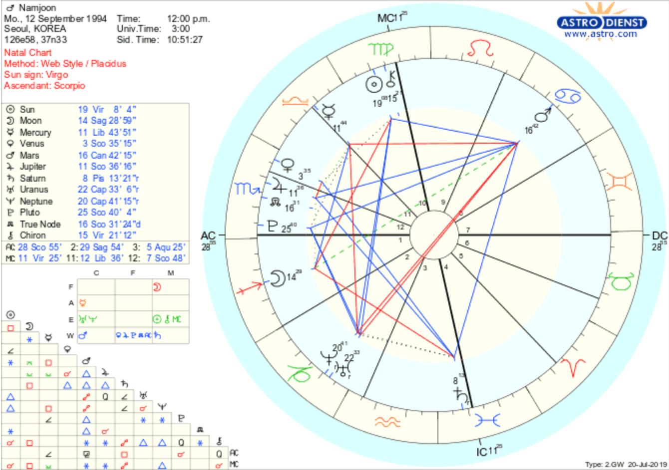 Bts v astrology chart. BTS' Birth Chart: Moon, Sun, Rising, and Planet Signs BTS' RM's Personal Planets. In general, we only know three astrological signs, sun, rising, and moon. But, apparently, there are other signs that are formed by planets. Although there are 7 planets, only 3 are often mentioned, namely Venus, Mars, and Mercury. In Mercury, RM is a Virgo who is an ambitious and tidy person. Microsoft takes the gloves off as it battles Sony for its ... Oct 12, 2022 · Microsoft pleaded for its deal on the day of the Phase 2 decision last month, but now the gloves are well and truly off. Microsoft describes the CMA’s concerns as “misplaced” and says that ... bts natal charts - ☾ bts astrology bts natal charts. for my first post, i will share the natal charts of bts. enjoy x. SEOKJIN; December 04, 1992; Gwacheon, SK Sun - Sagittarius Moon - Aries Mercury - Scorpio Venus - Capricorn Mars - Cancer Jupiter - Libra Saturn - Aquarius Uranus - Capricorn Neptune - Capricorn Pluto - Scorpio Lilith - Pisces YOONGI; March 9, 1993; Daegu, SK ... bts v astrology chart - 3 Best Astrology Readings in 2021 Astrology Readings have been obtaining increasingly preferred recently with 30% of Americans claimed to believe in astrology and horoscopes. While most individuals recognize what their zodiac signs are, few have the ability to make use of that to bring about positive modifications in their life. bts v astrology chart